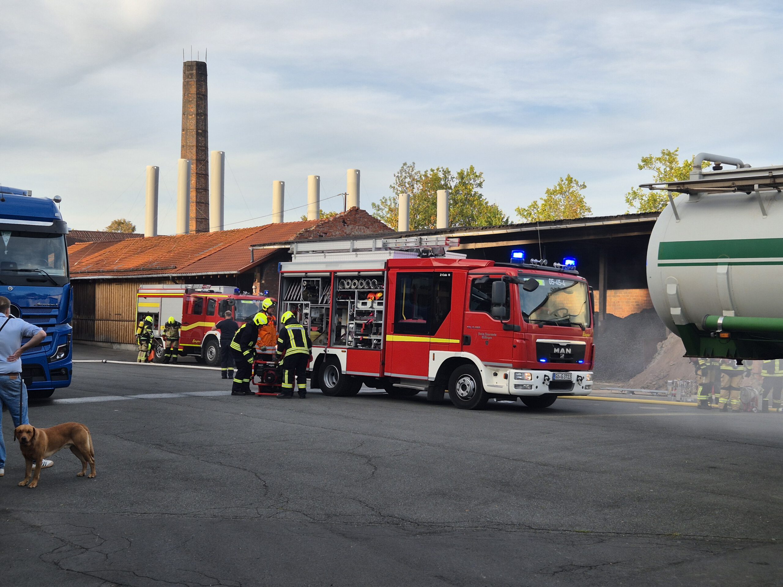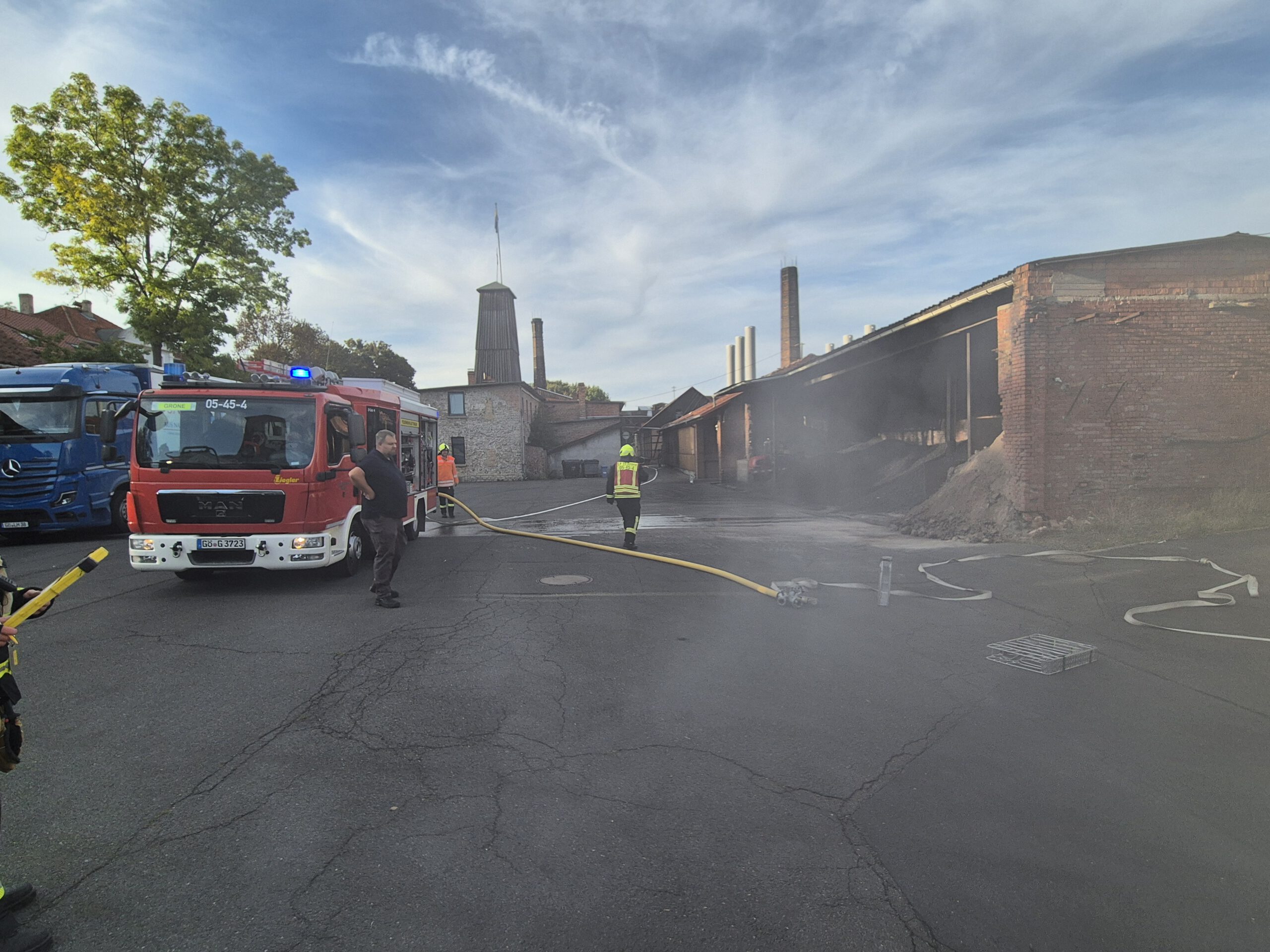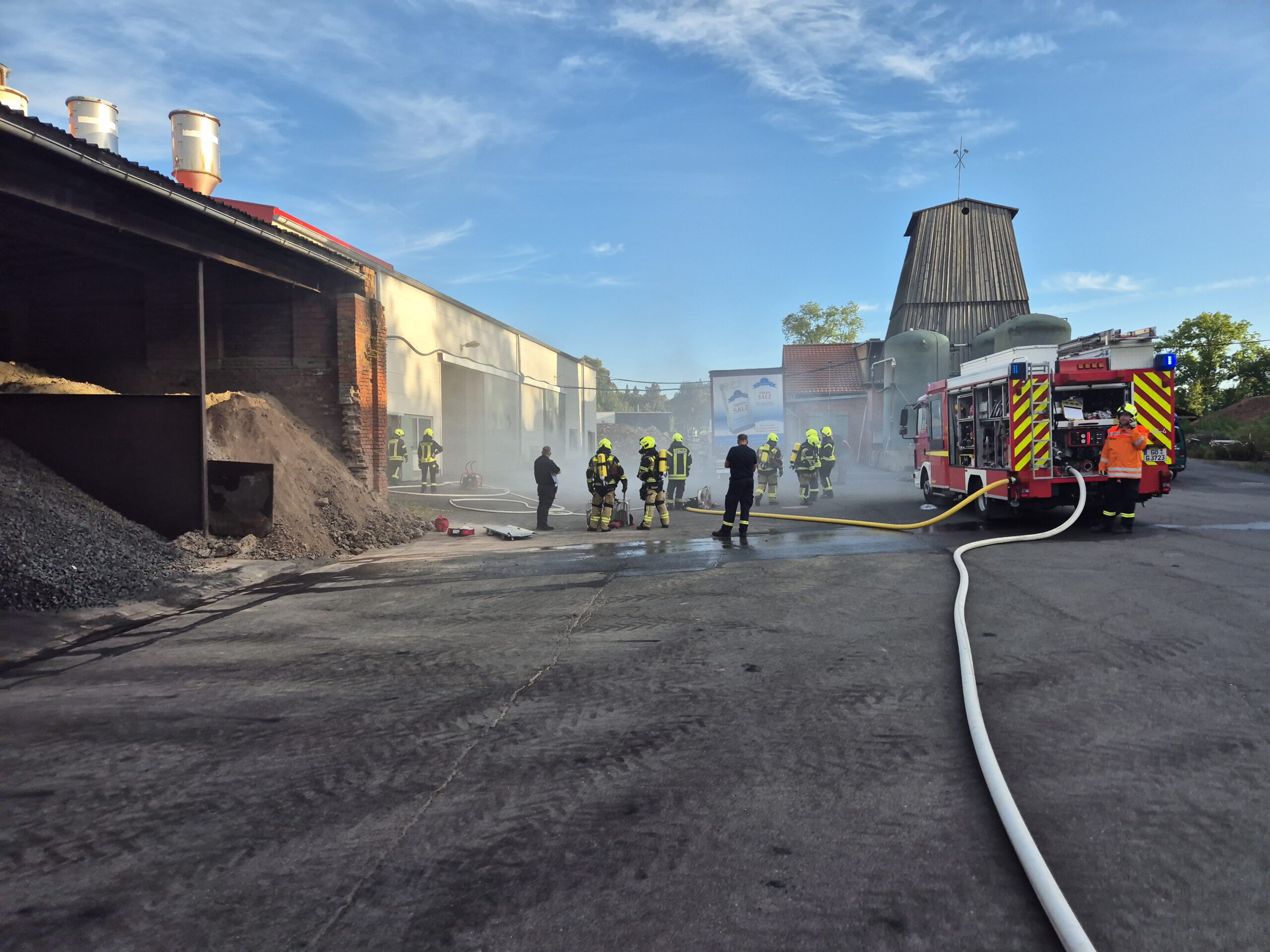 Per Meldeempfänger wurden die Einsatzkräfte gegen 17:40 Uhr zu einer „Rauchentwicklung in einer Halle mit vermissten Personen“ alarmiert. Bereits sieben Minuten nach der Alarmierung war das erste Löschfahrzeug, mit Einsatzkräften vor Ort. Diese sind von einem Betriebsangehörigen in Empfang genommen und in den Einsatz eingewiesen wurden.Nach weiteren Minuten ist das zweite Löschfahrzeug am Einsatzort eingetroffen.