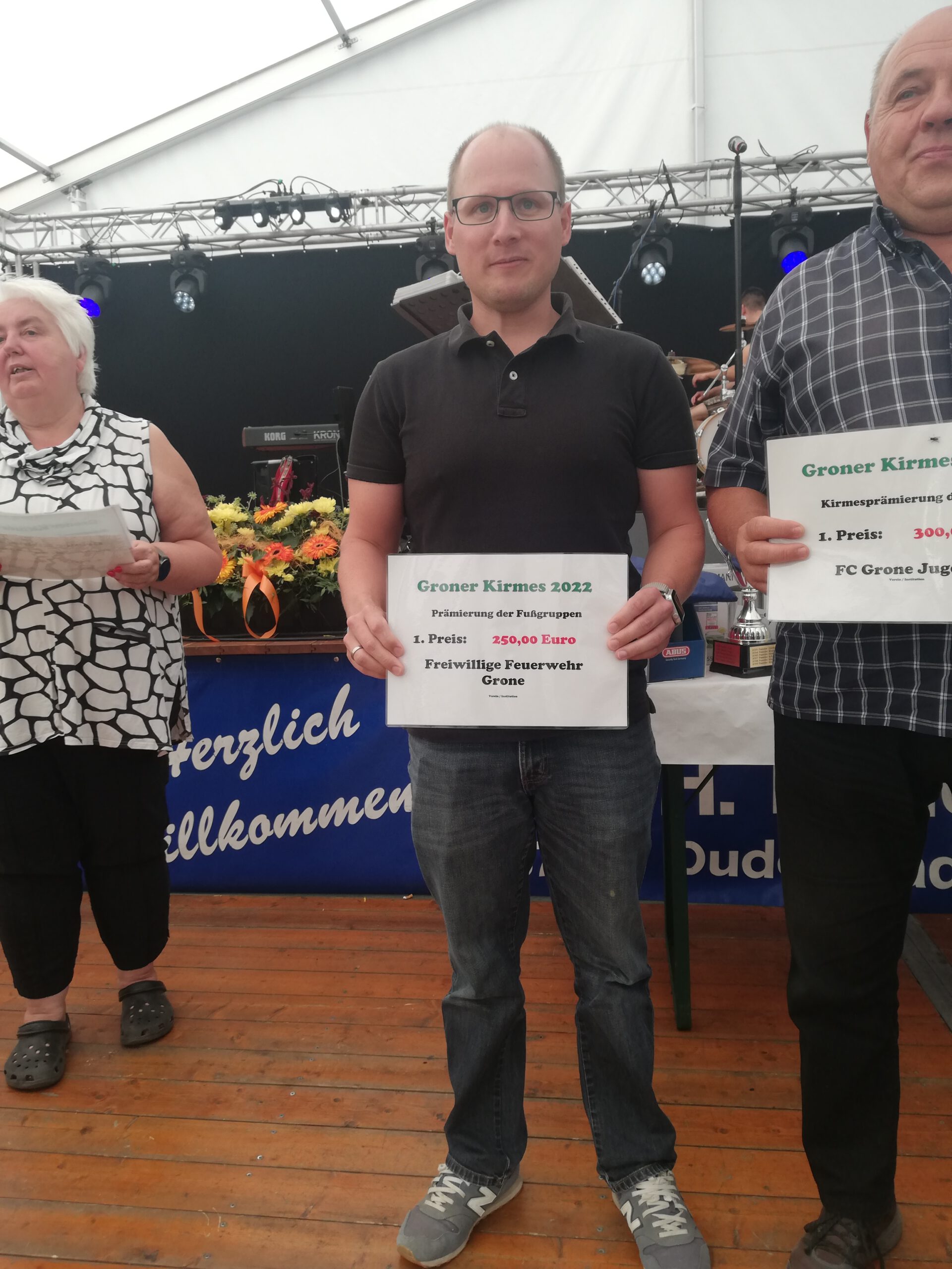 ihre Wertung bekannt: Platz 1 der besten Fußgruppe ging hierbei an die Ortsfeuerwehr Grone.